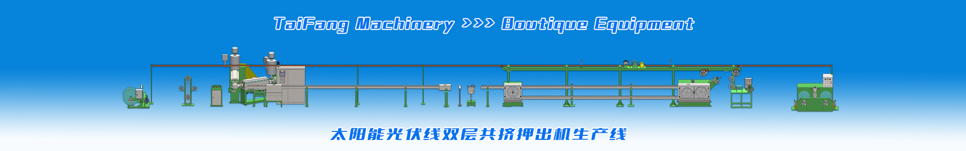 適應(yīng)于生產(chǎn)太陽能光伏電纜、低煙無鹵料電纜、輻照電纜、XL-PE交聯(lián)聚乙烯電纜,主要有高速絞線機、雙層共擠及串聯(lián)生產(chǎn)線設(shè)備。